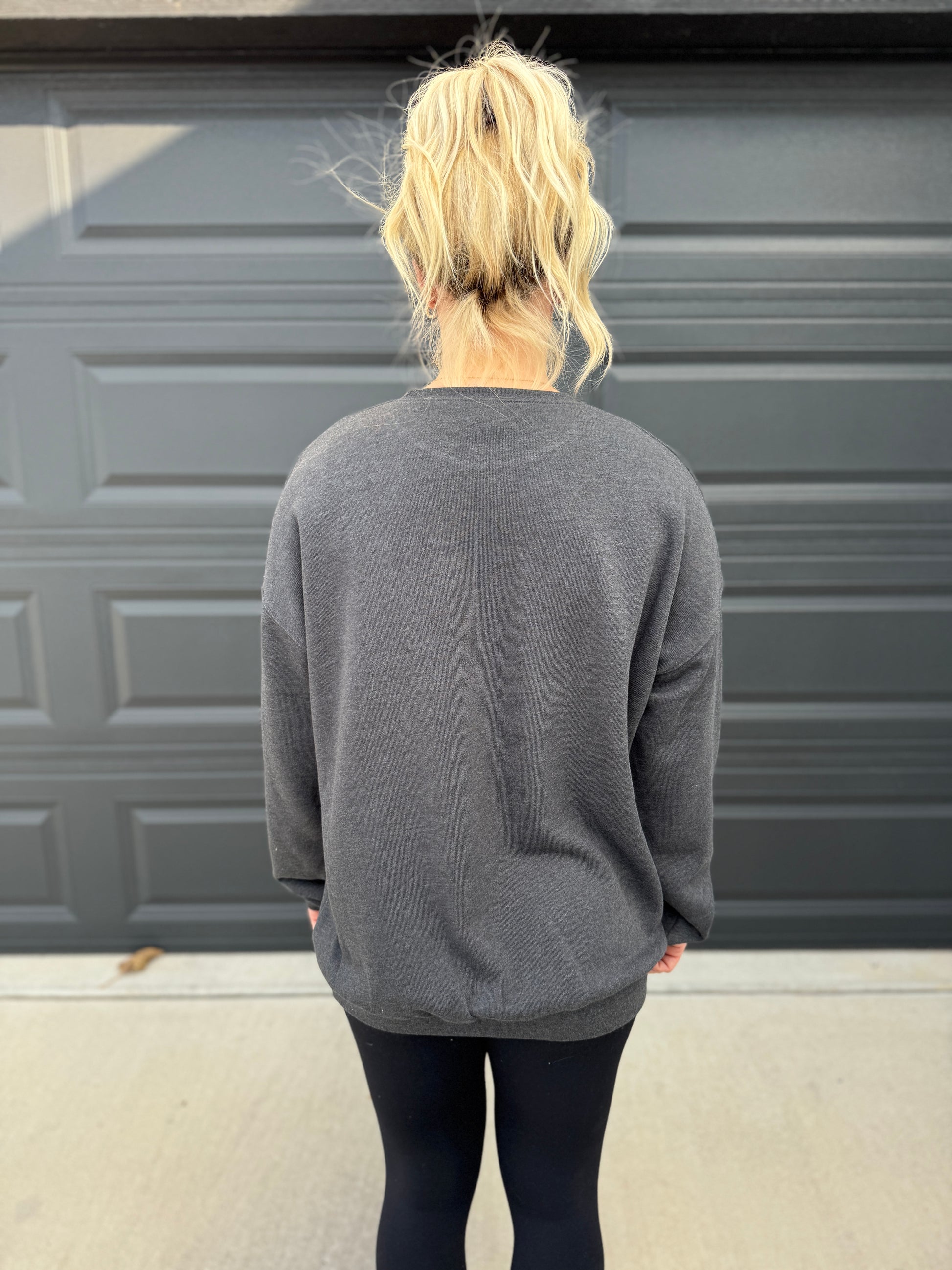 Cozy Bella Canvas Crewneck Sweatshirt. Model is 5'6" 145 pounds wearing a large