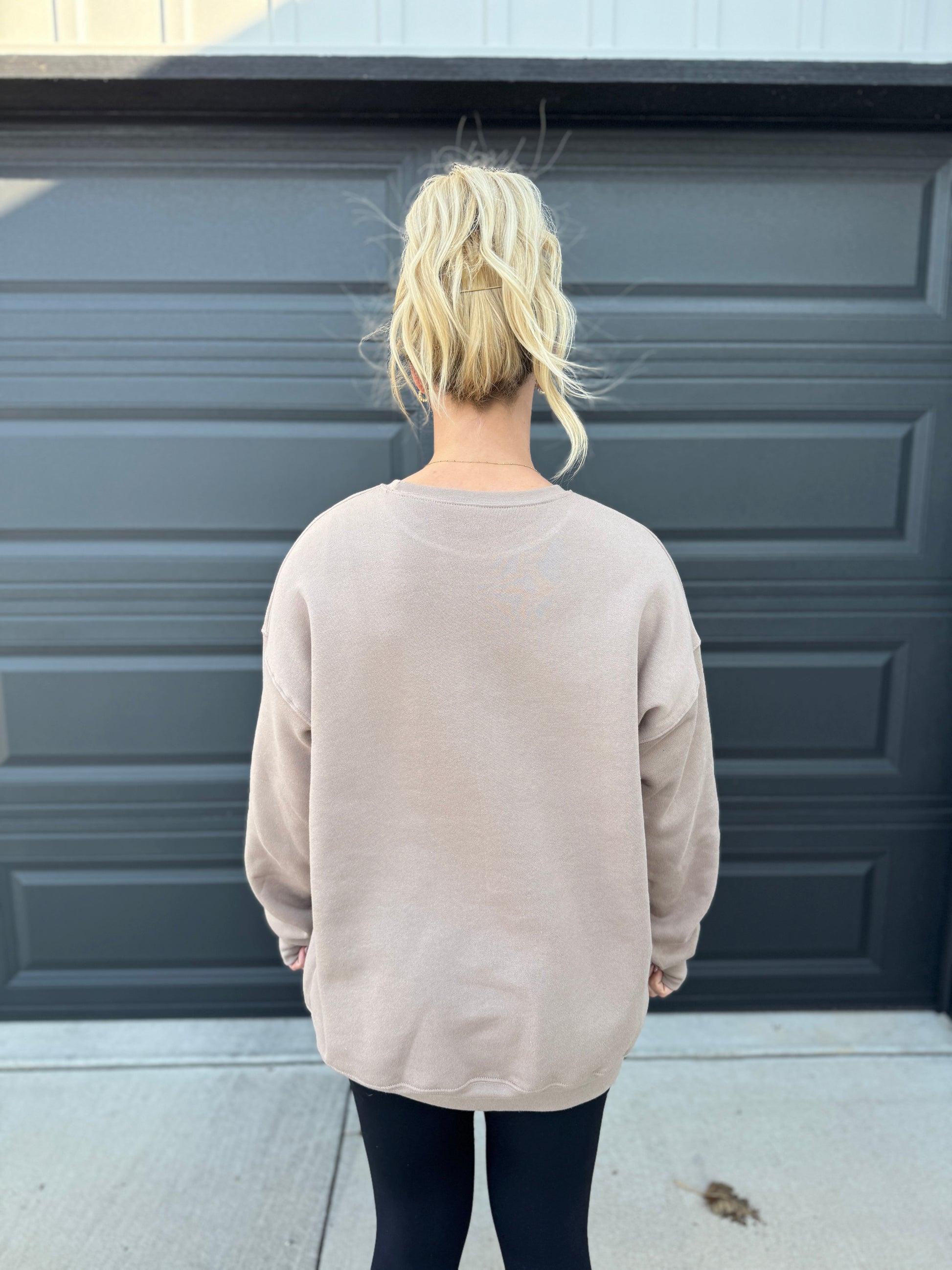 Cozy Bella Canvas Crewneck Sweatshirt. Model is 5'6" 145 pounds wearing a large